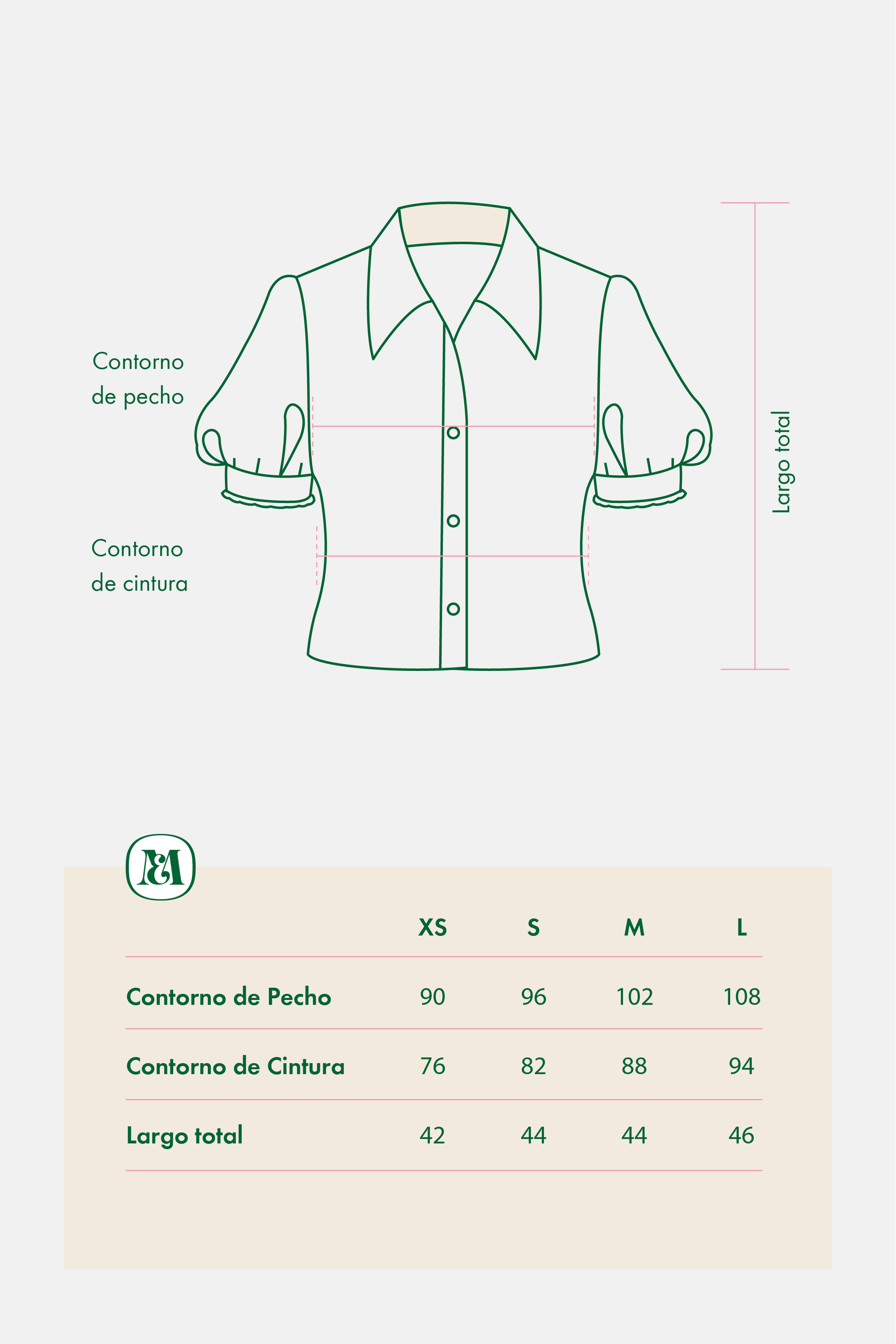 (*) Considere que es una blusa de ajuste holgado, no tallada.
