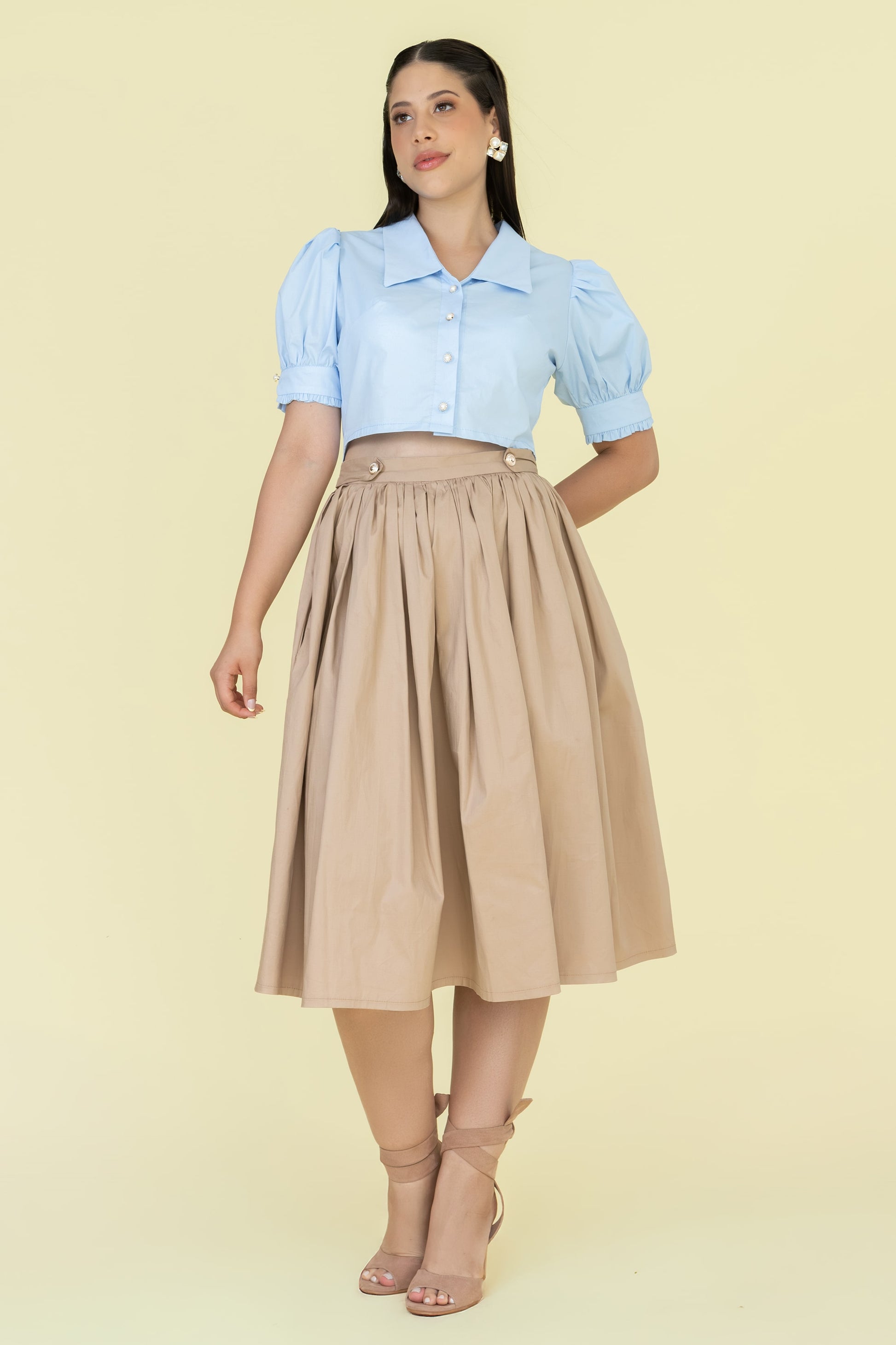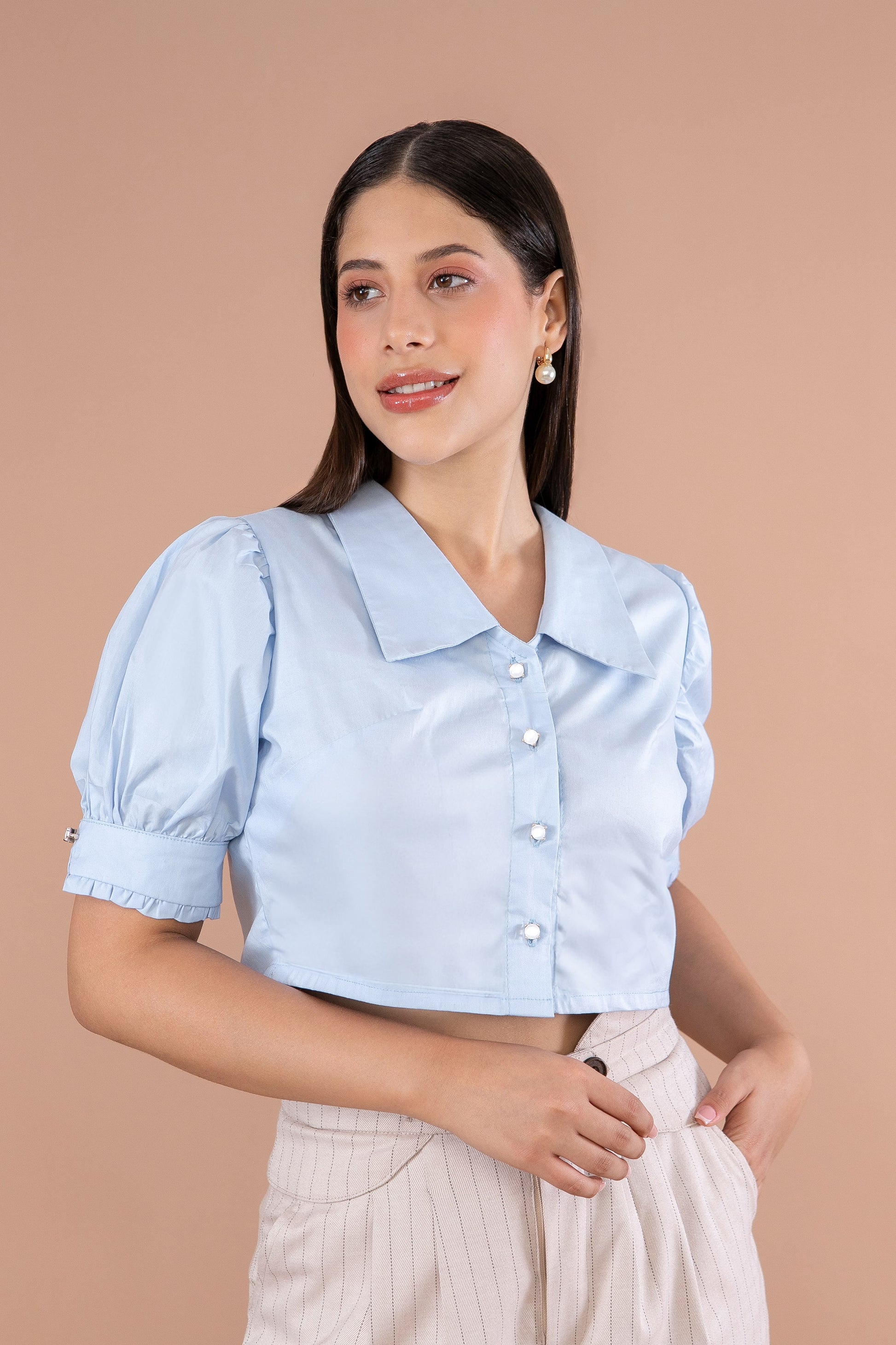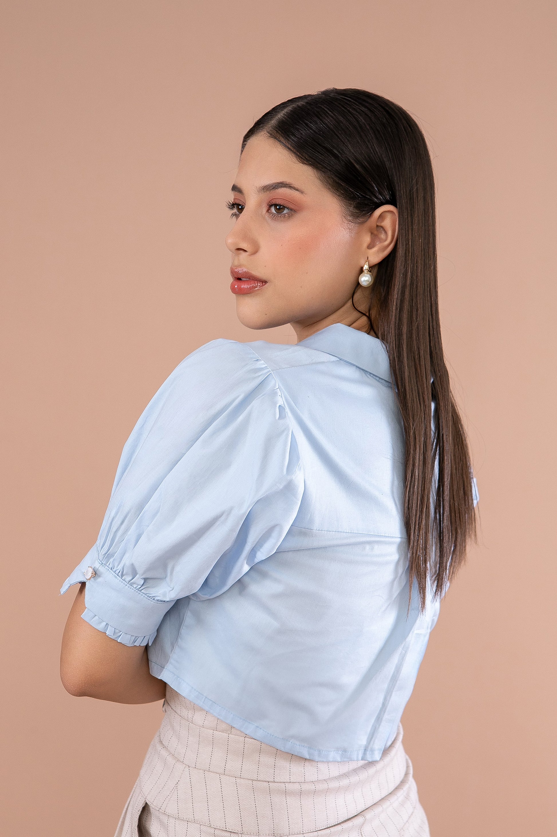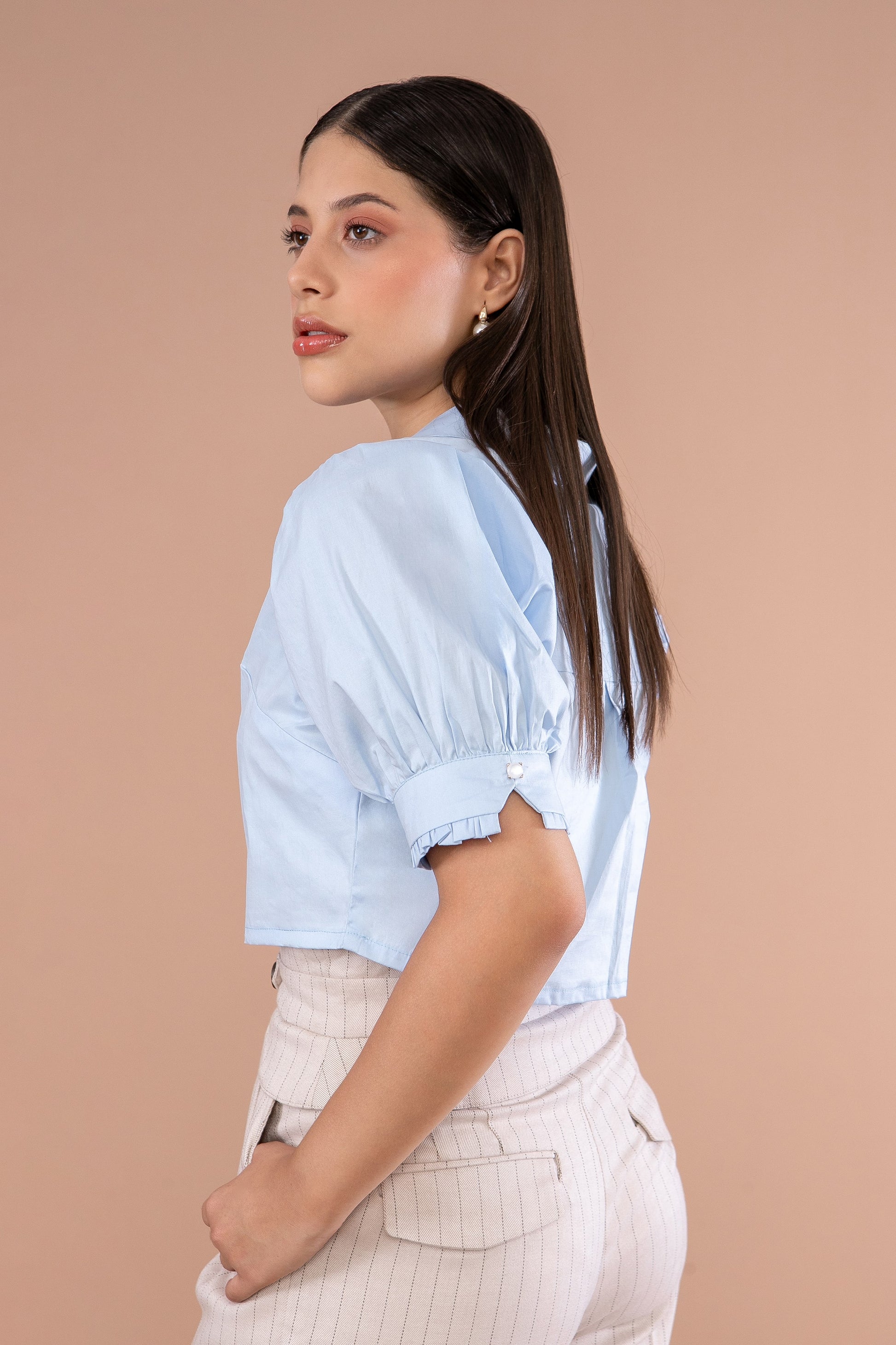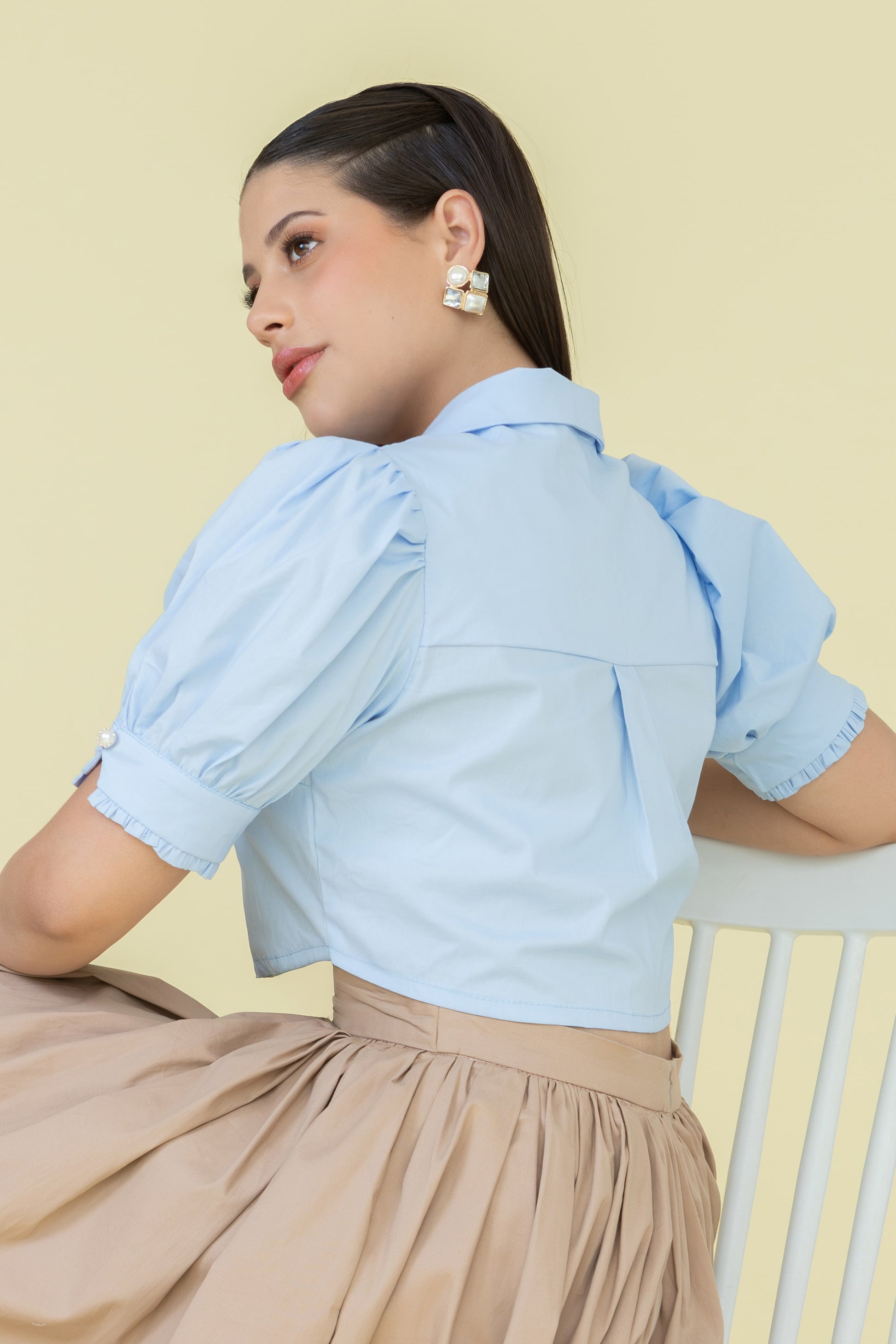 Bonita, es nuestra blusa crop icono de la marca. Tiene un derroche de ternura y delicadeza. Sus mangas cortas abullonada, cuello babero en punta y su delicada tela en cotton versace, que nunca pasarán de moda.